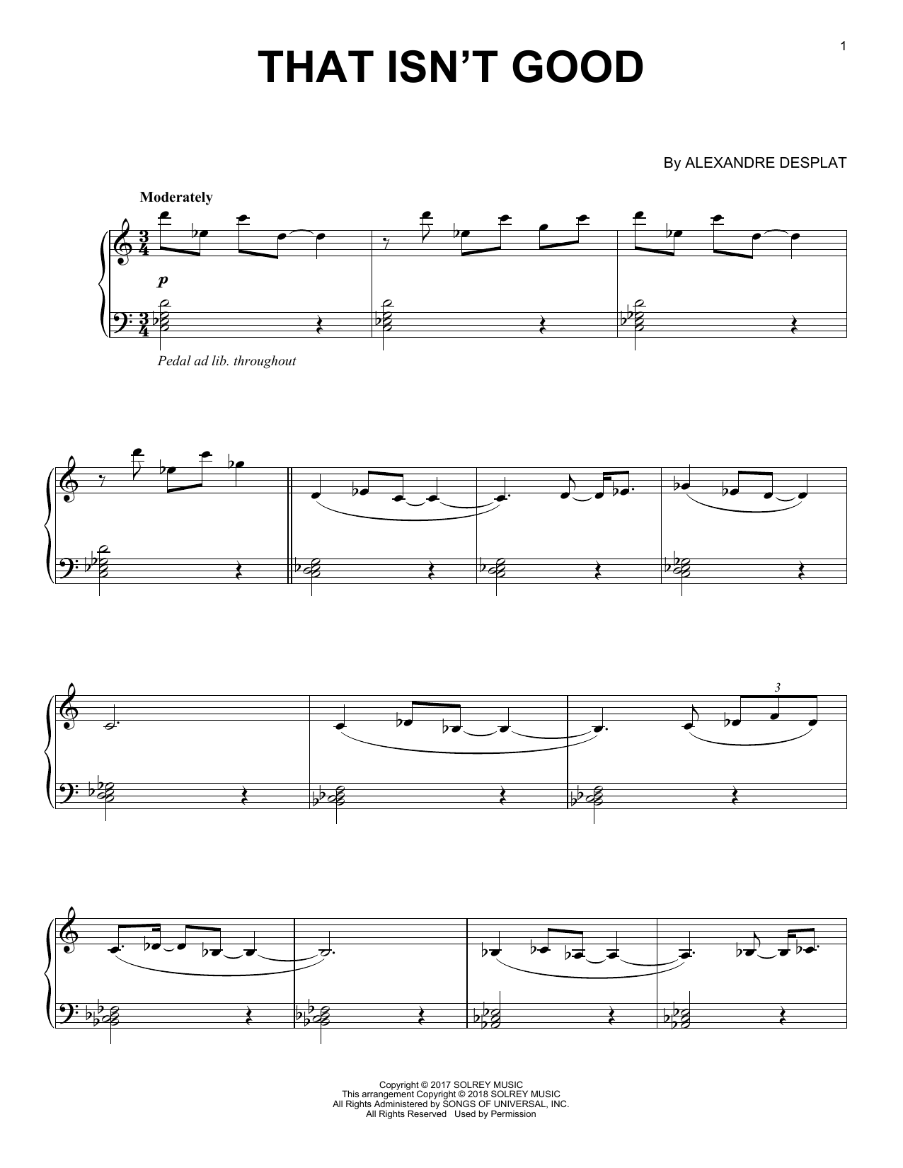 Download or print Alexandre Desplat That Isn't Good sheet music, chords and digital score arranged for Piano Solo. This Film/TV score includes 2 page(s).