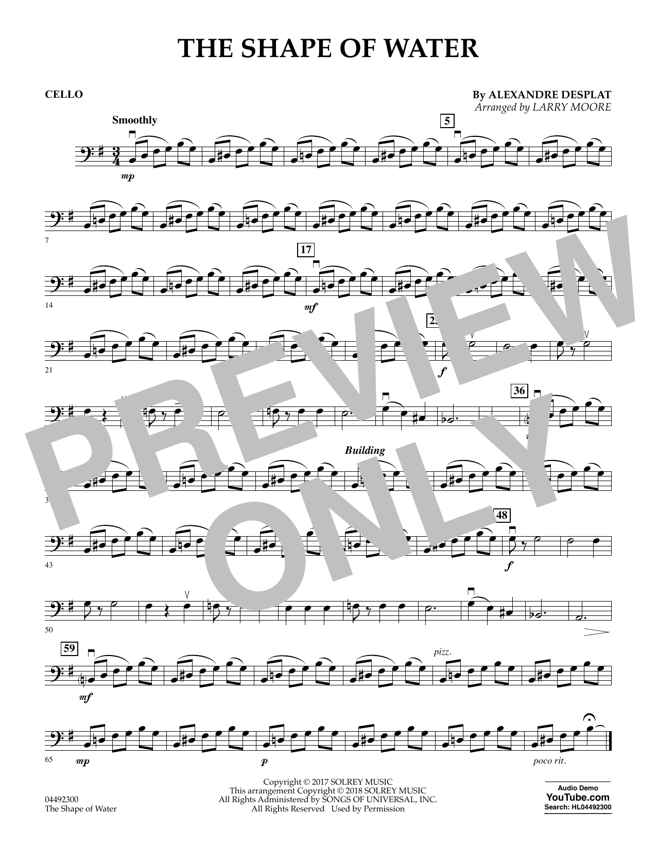 Quick facts The Shape of Water (arr. Larry Moore) - Cello about digital sheet music