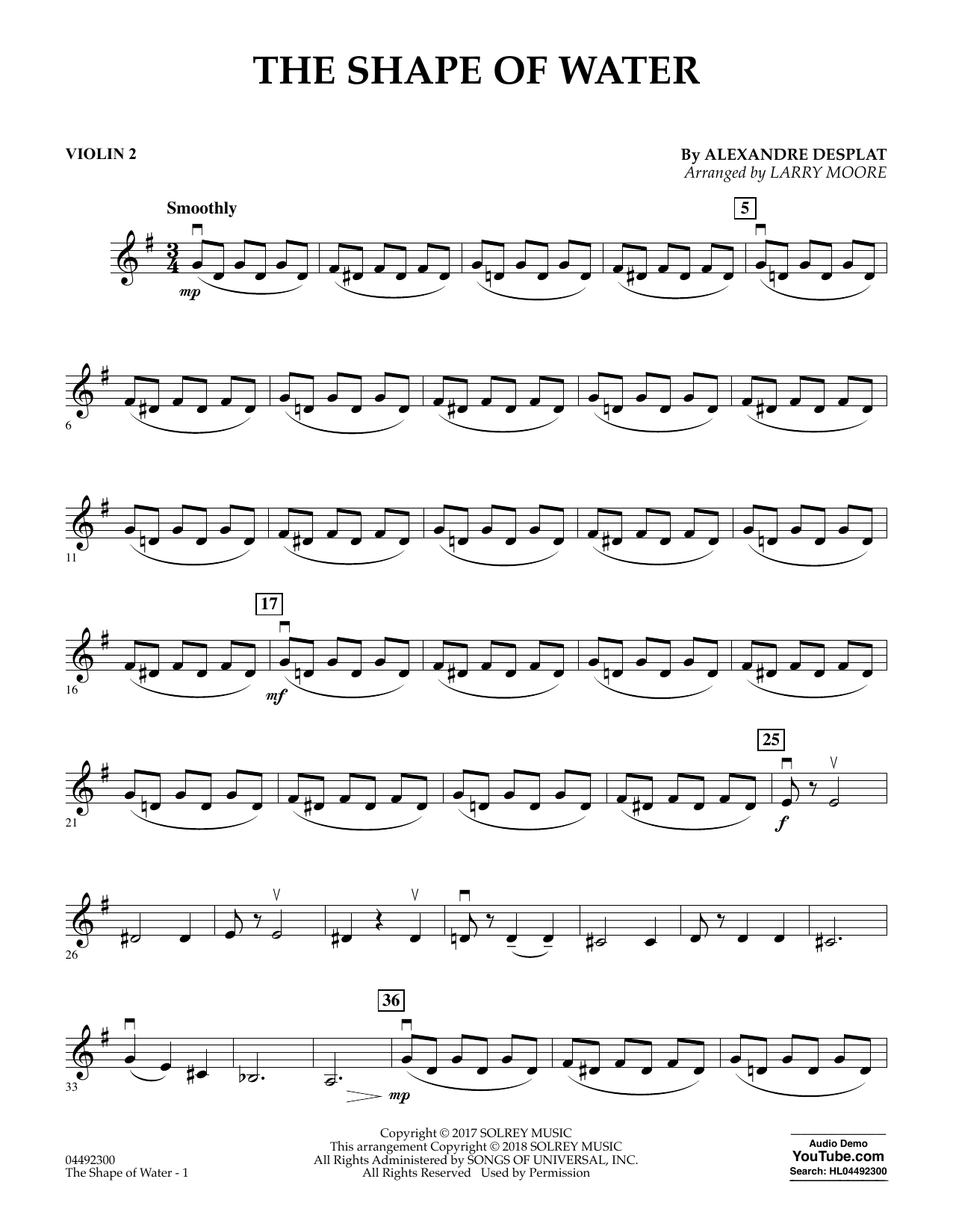 Quick facts The Shape of Water (arr. Larry Moore) - Violin 2 about digital sheet music