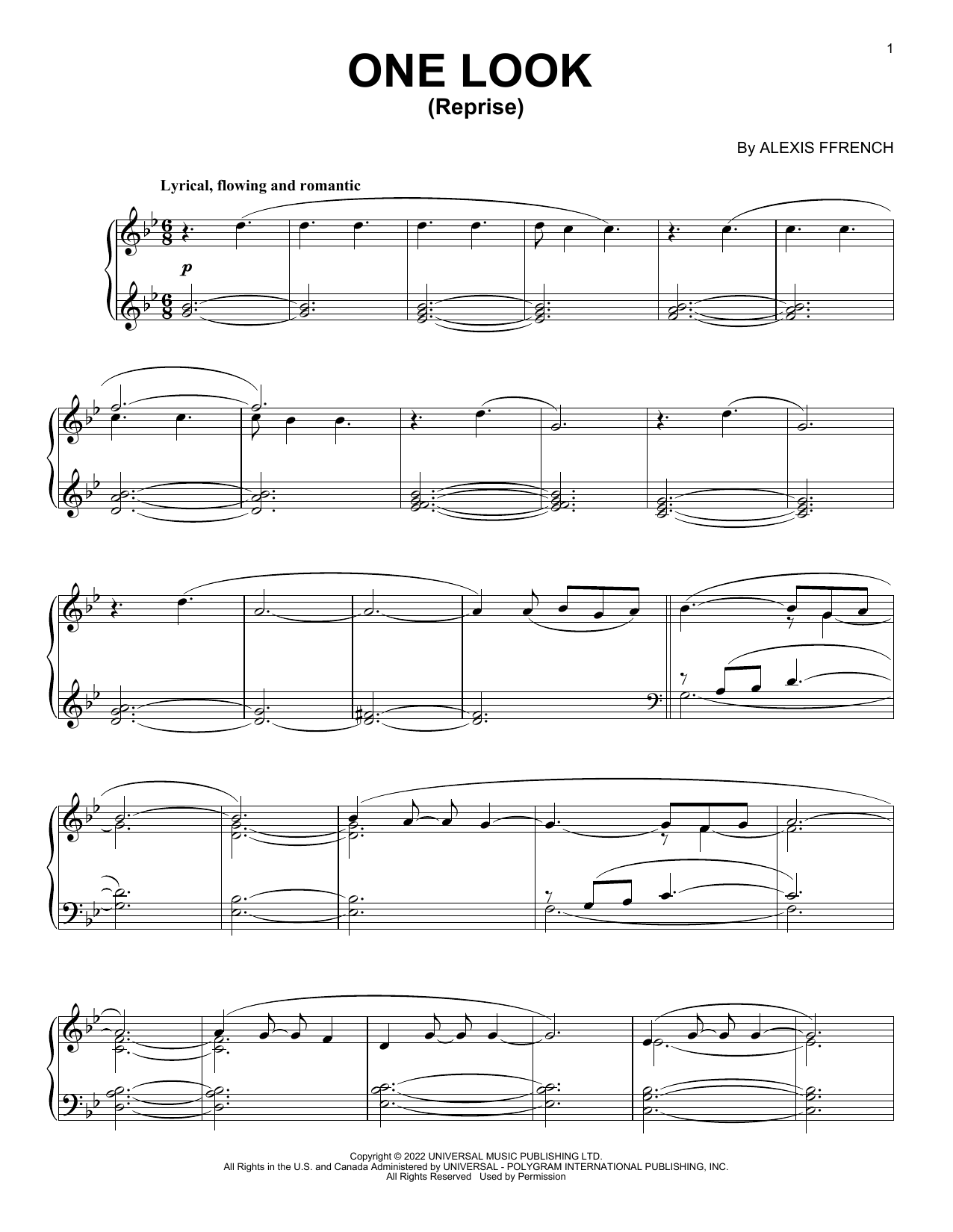 Download or print Alexis Ffrench One Look (Reprise) sheet music, chords and digital score arranged for Piano Solo. This Classical score includes 7 page(s).