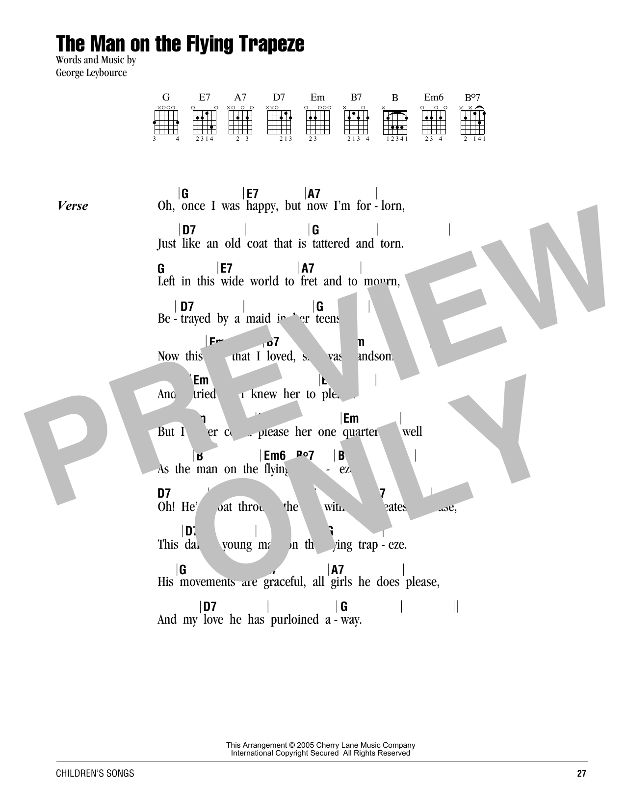 Download or print Alfred Lee The Man On The Flying Trapeze sheet music, chords and digital score arranged for Guitar Chords/Lyrics. This Children score includes 1 page(s).