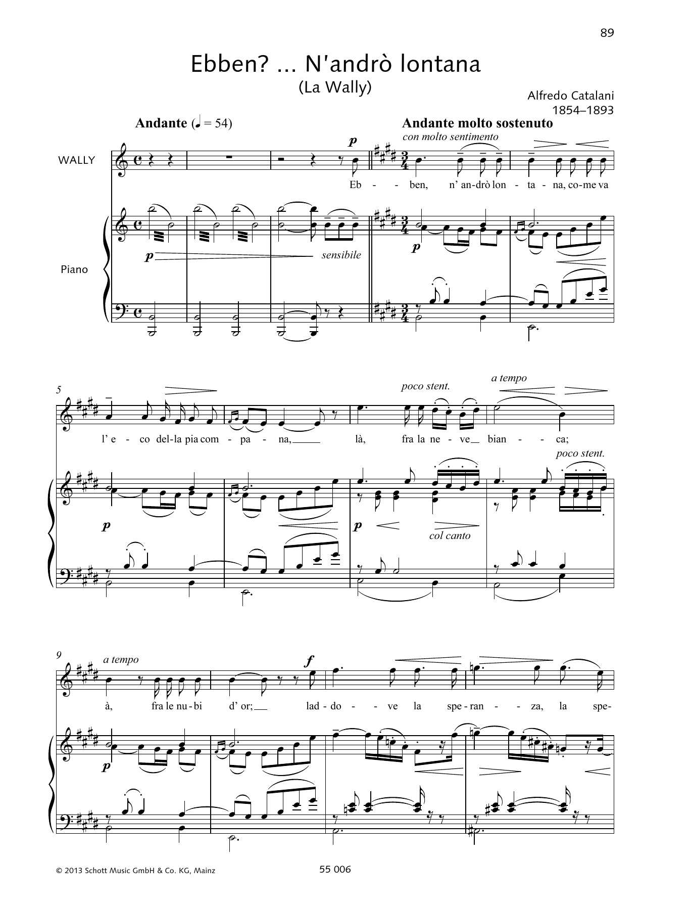 Download or print Alfredo Catalani Ebben? N'andrò lontana sheet music, chords and digital score arranged for Piano & Vocal. This Classical score includes 3 page(s).