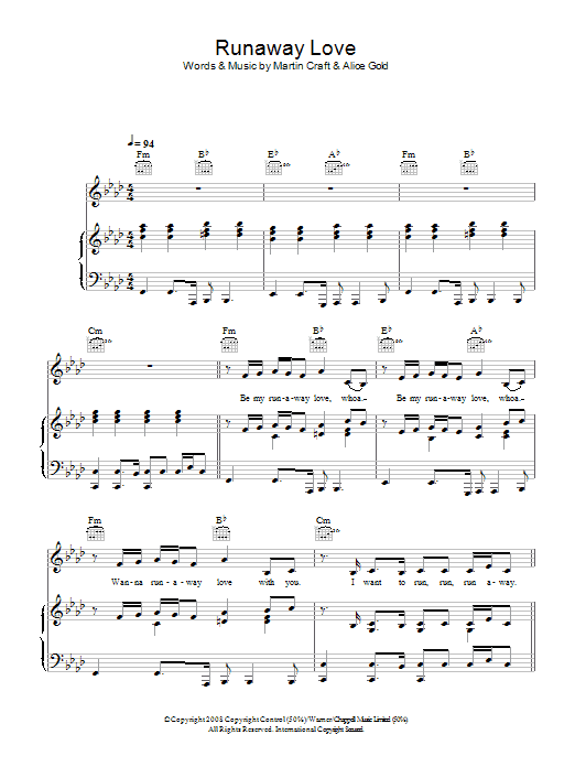 Download or print Alice Gold Runaway Love sheet music, chords and digital score arranged for Piano, Vocal & Guitar Chords. This Pop score includes 6 page(s).