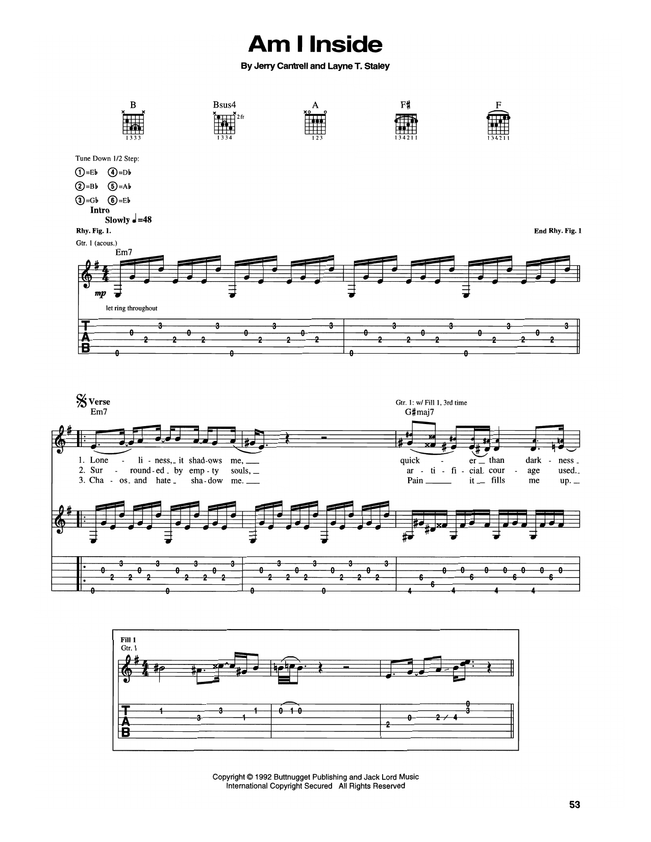 Download or print Alice In Chains Am I Inside sheet music, chords and digital score arranged for Guitar Tab. This Alternative score includes 3 page(s).