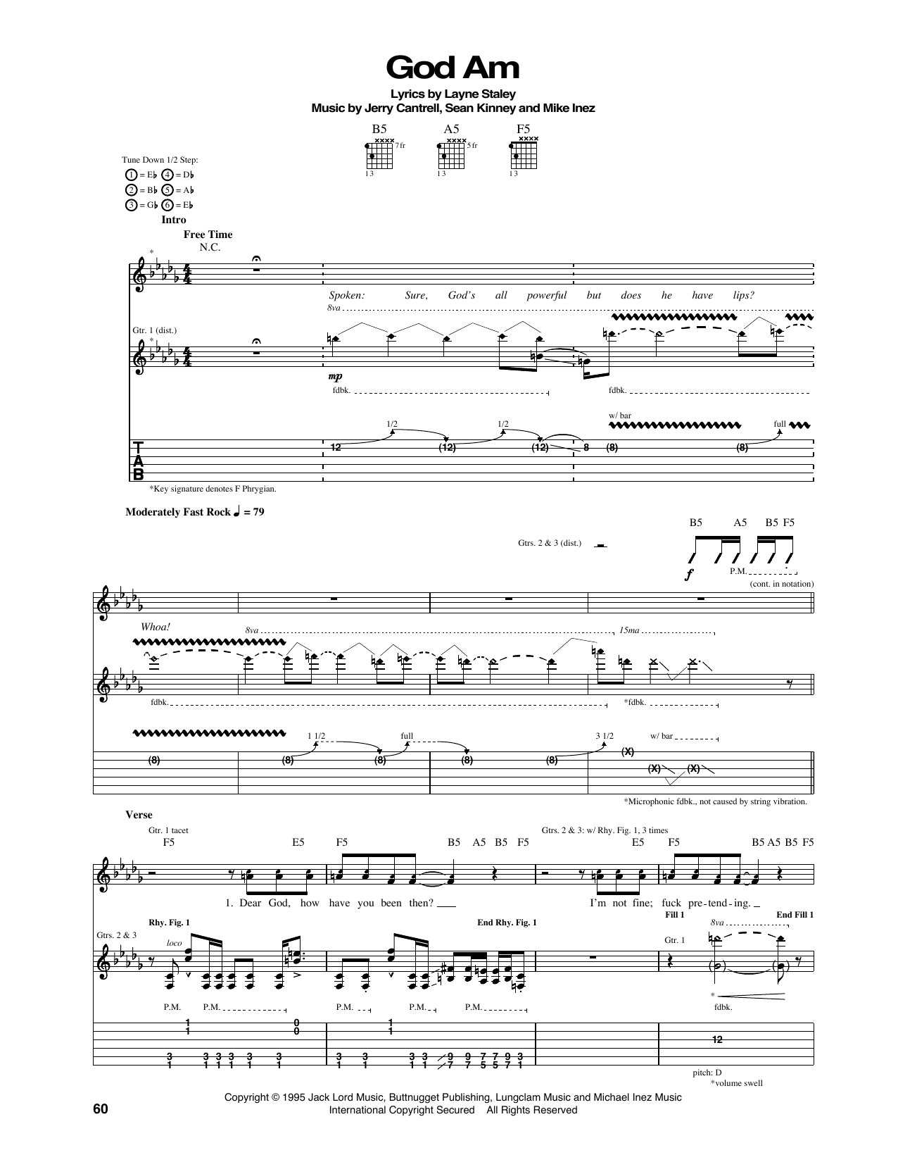 Download or print Alice In Chains God Am sheet music, chords and digital score arranged for Guitar Tab. This Pop score includes 6 page(s).