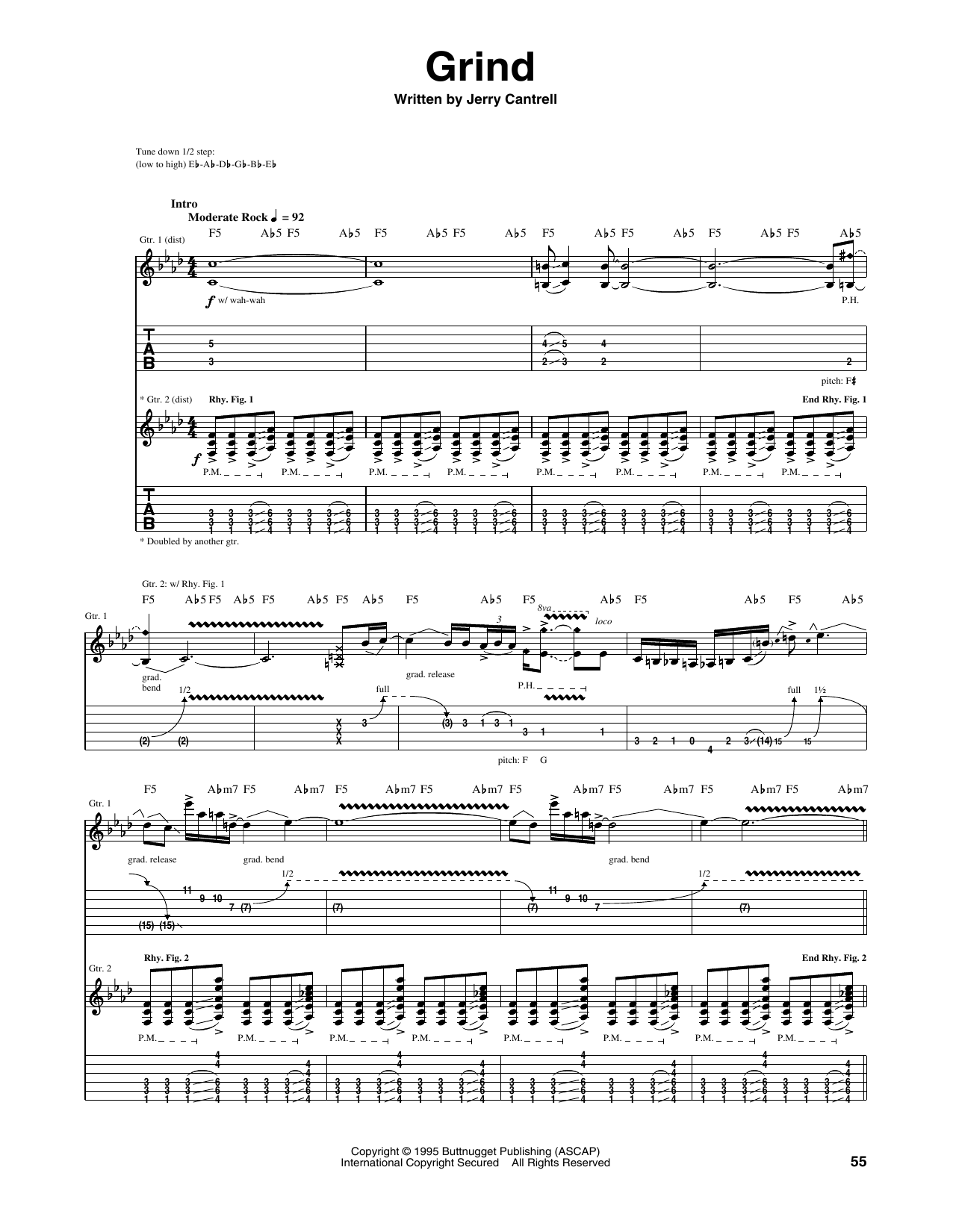 Download or print Alice In Chains Grind sheet music, chords and digital score arranged for Guitar Tab. This Alternative score includes 6 page(s).