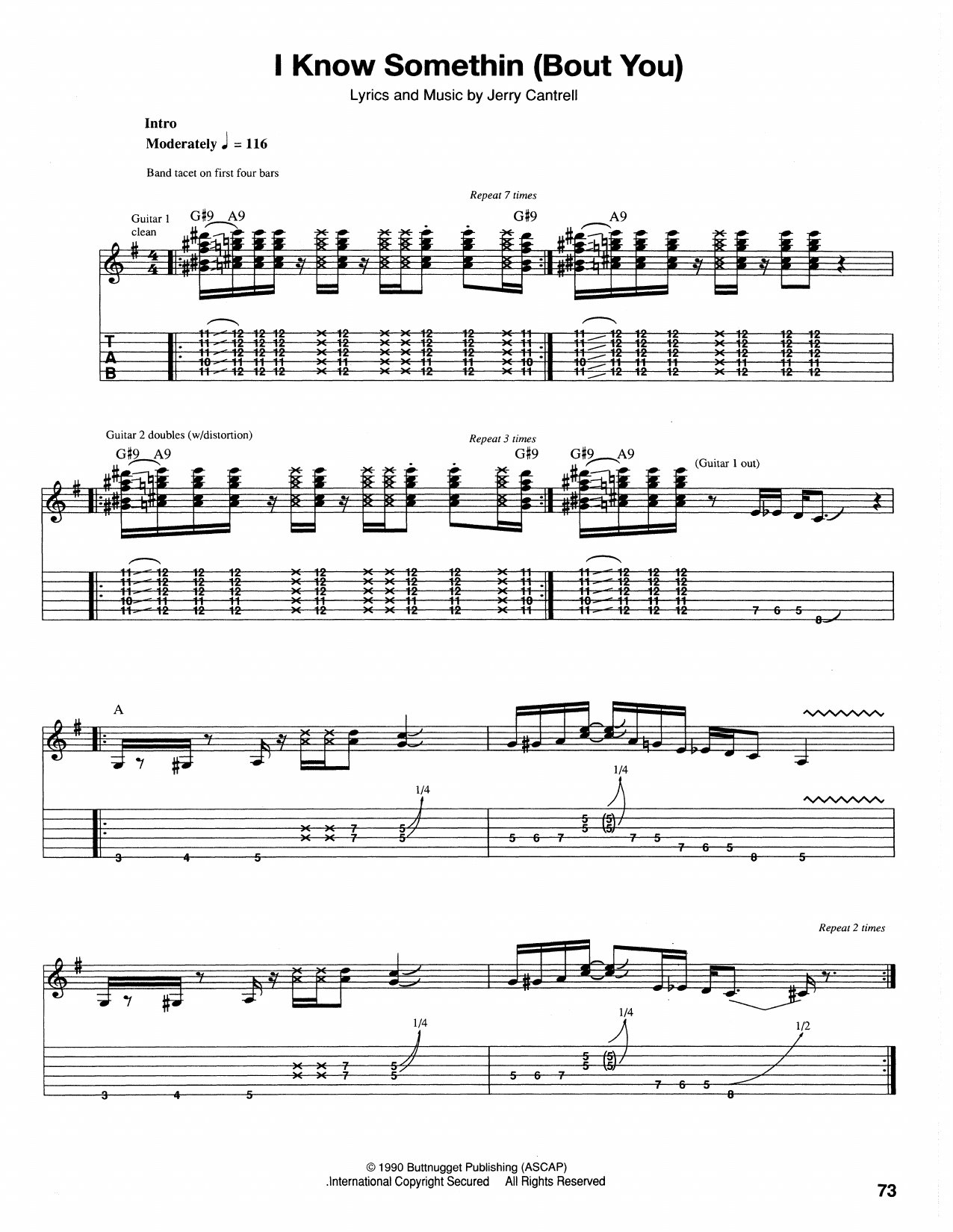Download or print Alice In Chains I Know Somethin' (Bout You) sheet music, chords and digital score arranged for Guitar Tab. This Alternative score includes 7 page(s).
