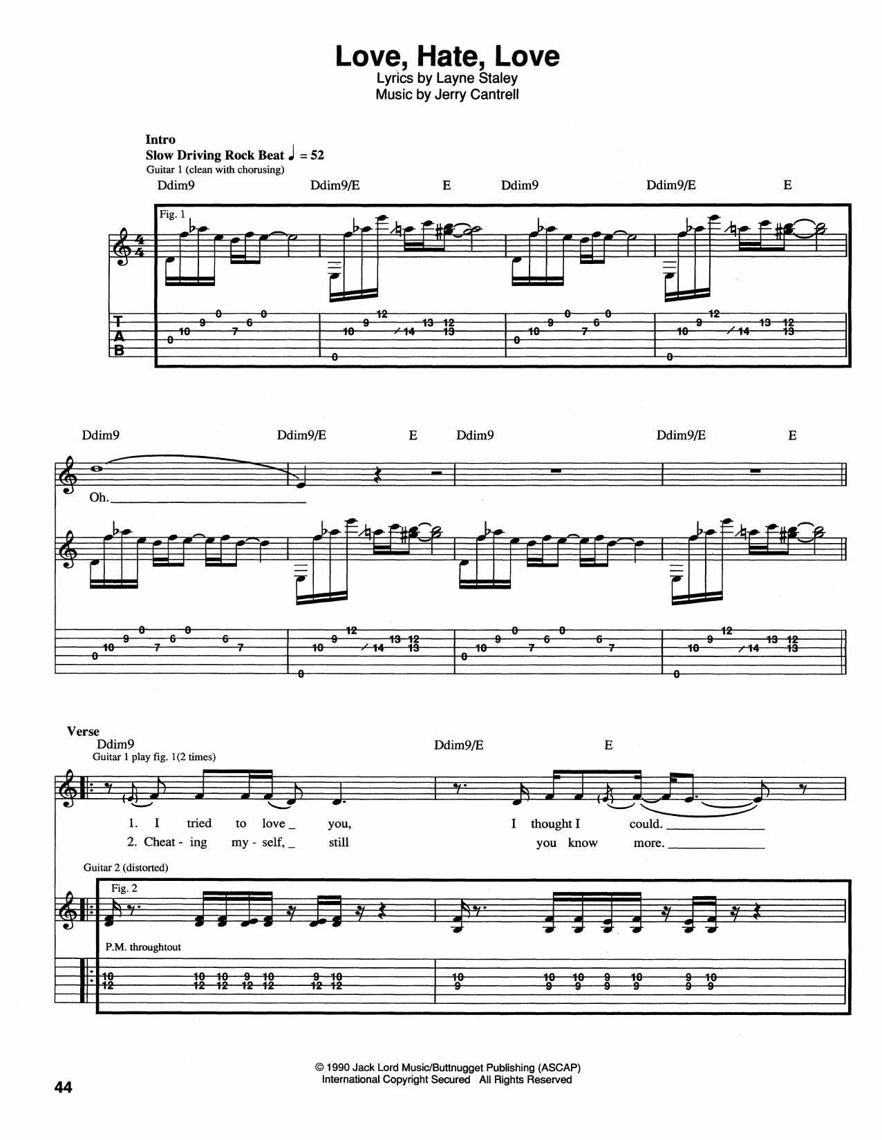 Download or print Alice In Chains Love, Hate, Love sheet music, chords and digital score arranged for Guitar Tab. This Alternative score includes 6 page(s).