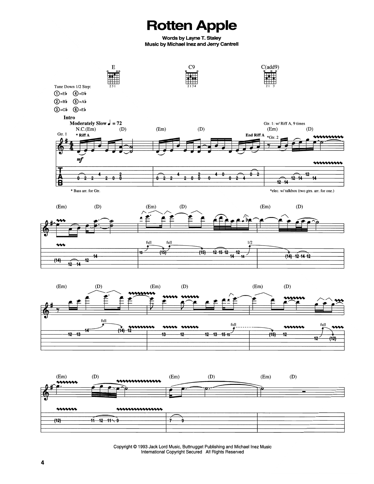 Download or print Alice In Chains Rotten Apple sheet music, chords and digital score arranged for Guitar Tab. This Alternative score includes 8 page(s).