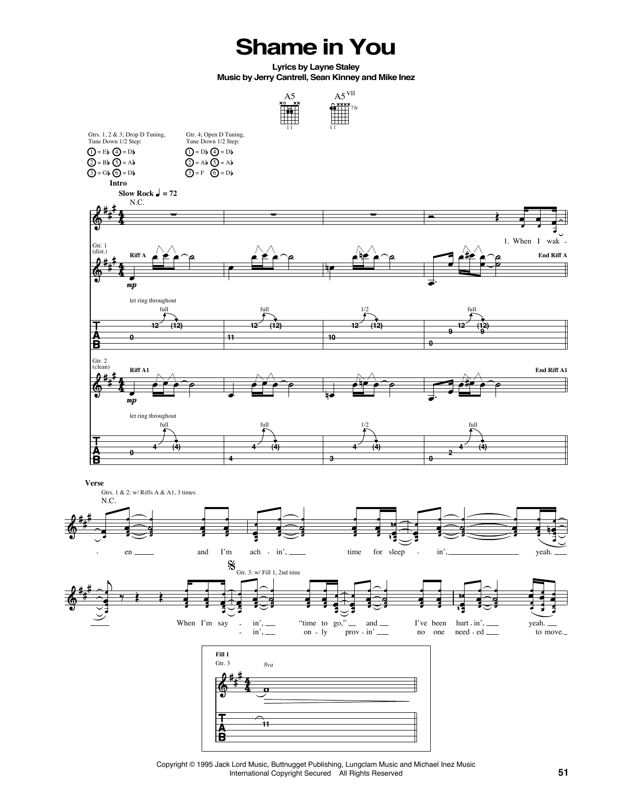 Download or print Alice In Chains Shame In You sheet music, chords and digital score arranged for Guitar Tab. This Pop score includes 9 page(s).