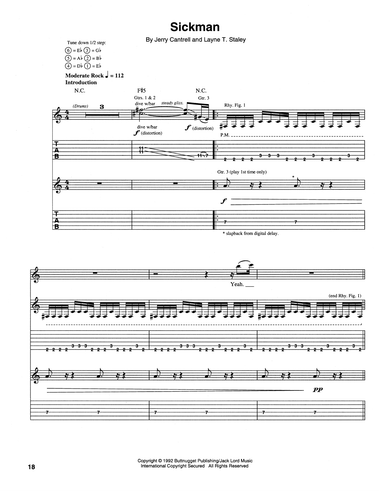 Download or print Alice In Chains Sickman sheet music, chords and digital score arranged for Guitar Tab. This Alternative score includes 6 page(s).