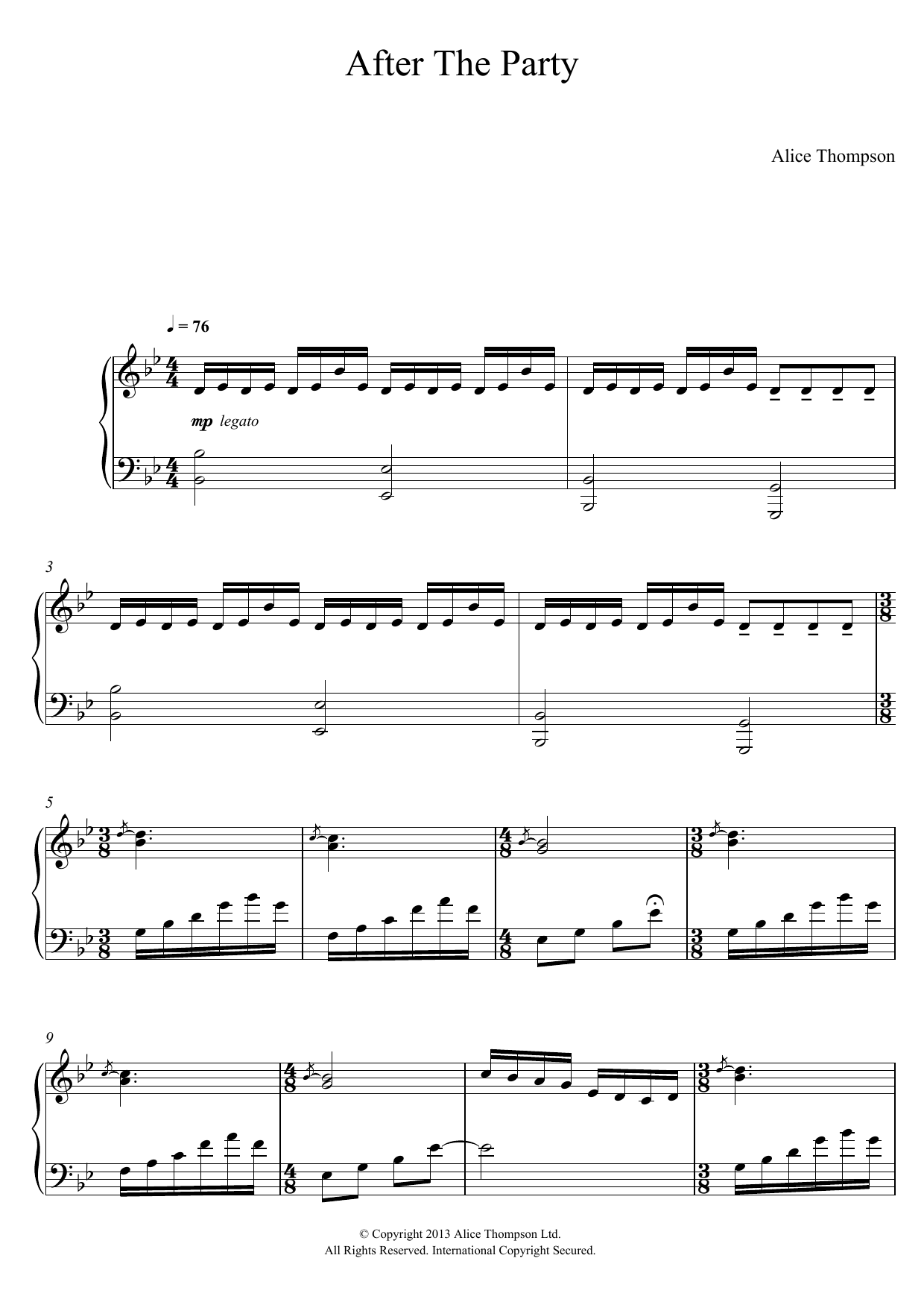 Download or print Alice Thompson After The Party sheet music, chords and digital score arranged for Piano Solo. This Alternative score includes 5 page(s).