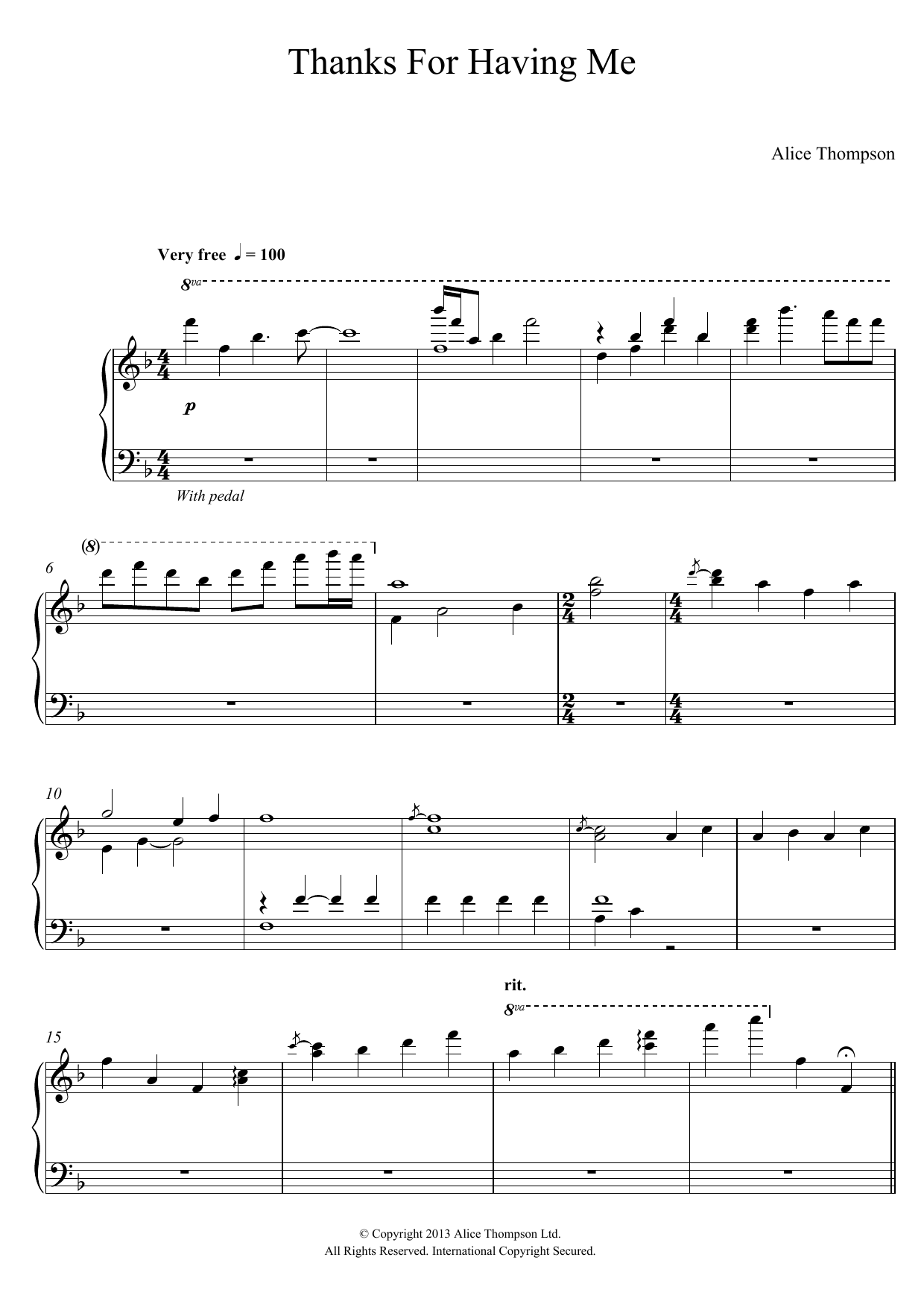 Download or print Alice Thompson Thanks For Having Me sheet music, chords and digital score arranged for Piano Solo. This Alternative score includes 5 page(s).