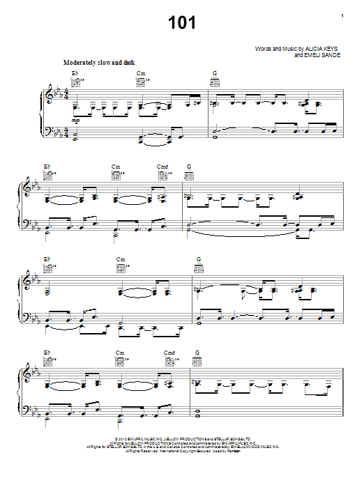 Download or print Alicia Keys 101 sheet music, chords and digital score arranged for Piano, Vocal & Guitar Chords (Right-Hand Melody). This Pop score includes 6 page(s).