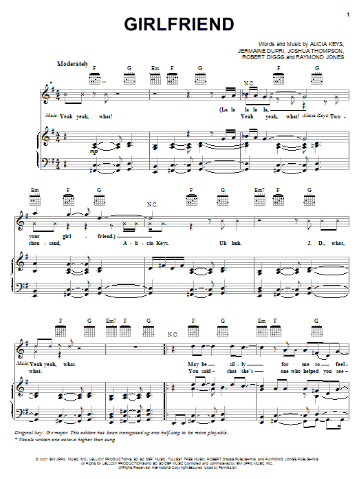 Download or print Alicia Keys Girlfriend sheet music, chords and digital score arranged for Easy Piano. This Pop score includes 6 page(s).