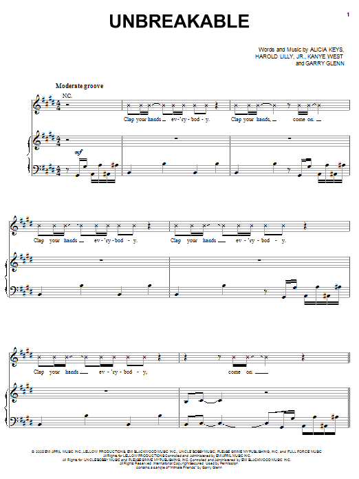 Download or print Alicia Keys Unbreakable sheet music, chords and digital score arranged for Piano, Vocal & Guitar Chords (Right-Hand Melody). This Pop score includes 7 page(s).