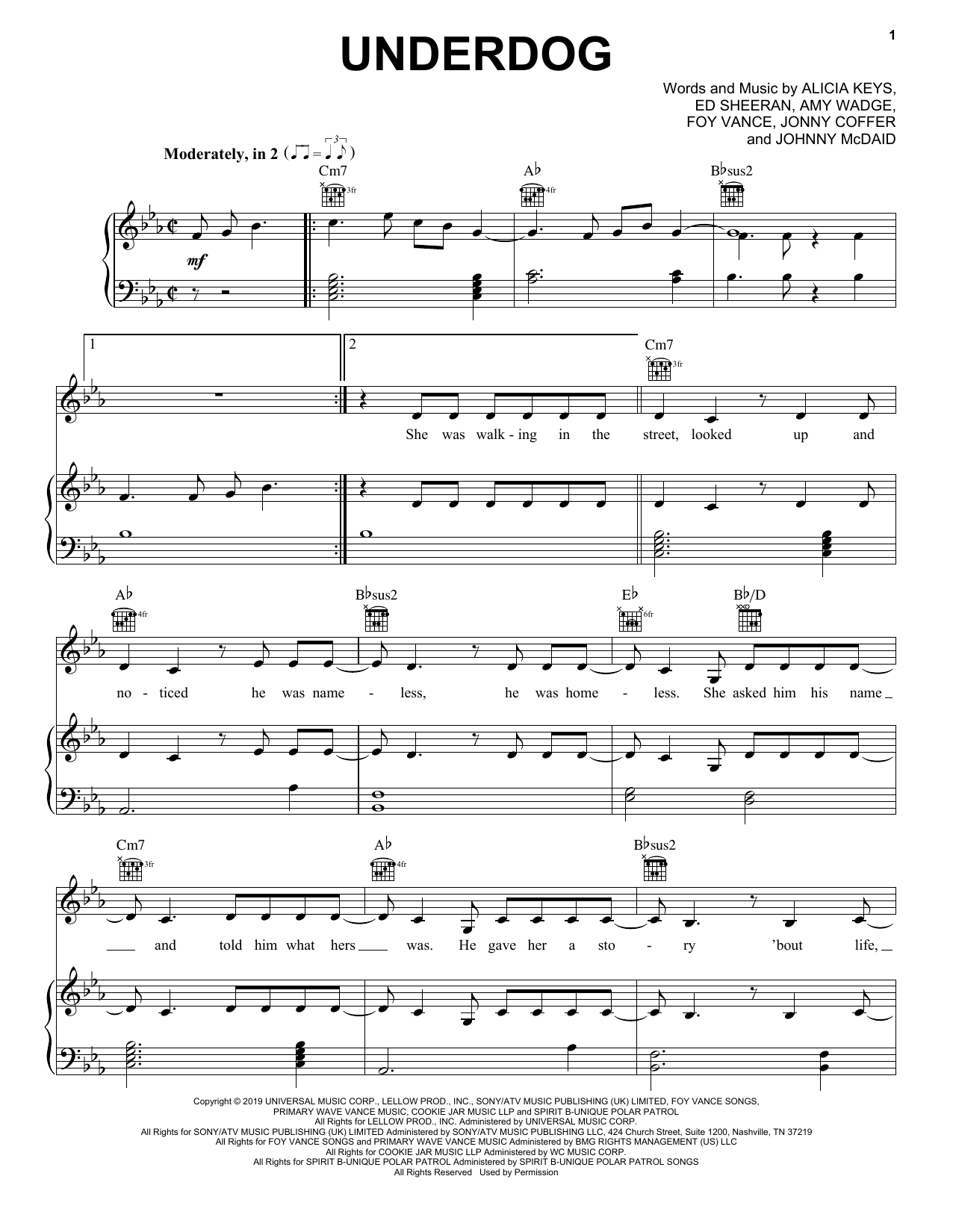 Download or print Alicia Keys Underdog sheet music, chords and digital score arranged for Easy Piano. This Pop score includes 8 page(s).