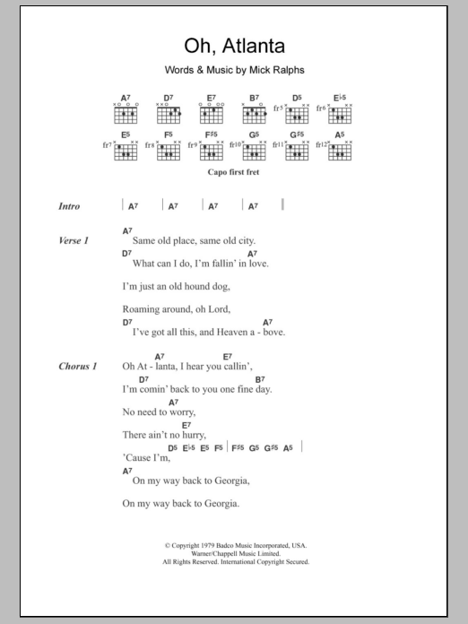 Download or print Alison Krauss Oh, Atlanta sheet music, chords and digital score arranged for Guitar Chords/Lyrics. This Country score includes 3 page(s).