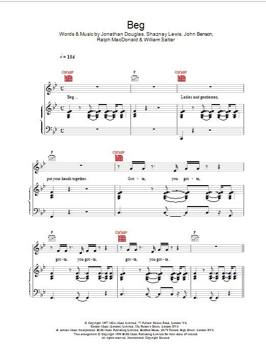 Download or print All Saints Beg sheet music, chords and digital score arranged for Piano, Vocal & Guitar Chords. This Pop score includes 7 page(s).