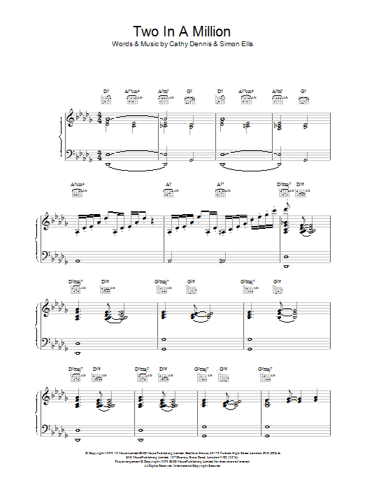 Download or print All Saints Two In A Million sheet music, chords and digital score arranged for Piano, Vocal & Guitar Chords. This Pop score includes 7 page(s).
