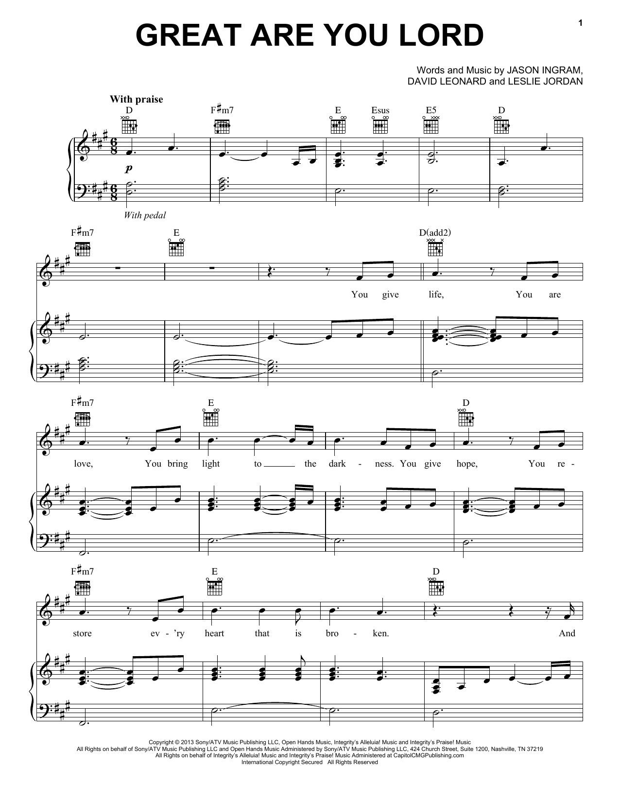 Download or print All Sons & Daughters Great Are You Lord sheet music, chords and digital score arranged for Easy Piano. This Praise & Worship score includes 4 page(s).