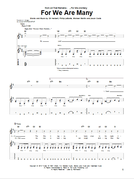 Download or print All That Remains For We Are Many sheet music, chords and digital score arranged for Guitar Tab. This Metal score includes 9 page(s).