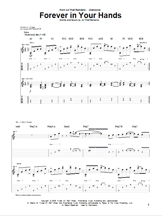Download or print All That Remains Forever In Your Hands sheet music, chords and digital score arranged for Guitar Tab. This Metal score includes 7 page(s).