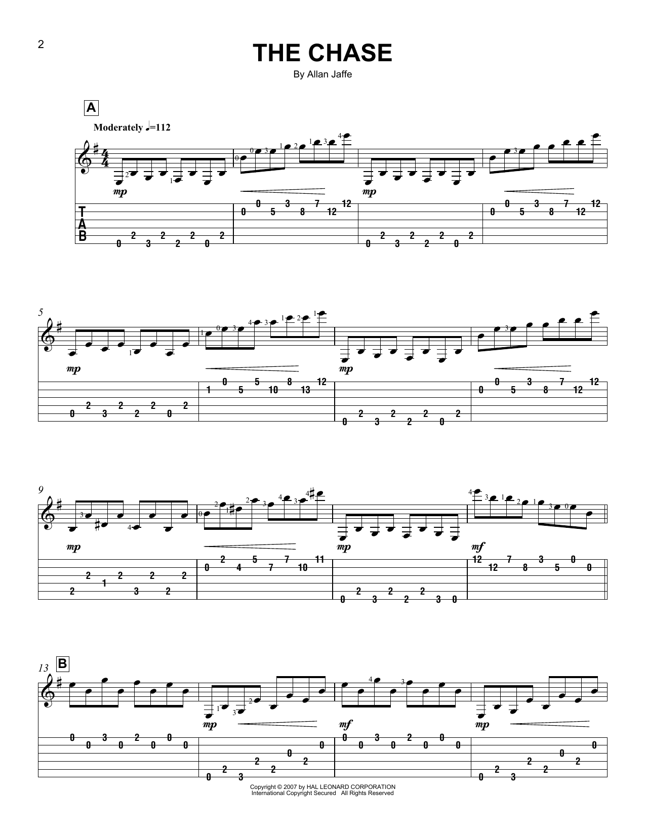 Download or print Allan Jaffe The Chase sheet music, chords and digital score arranged for Easy Guitar Tab. This Instructional score includes 3 page(s).