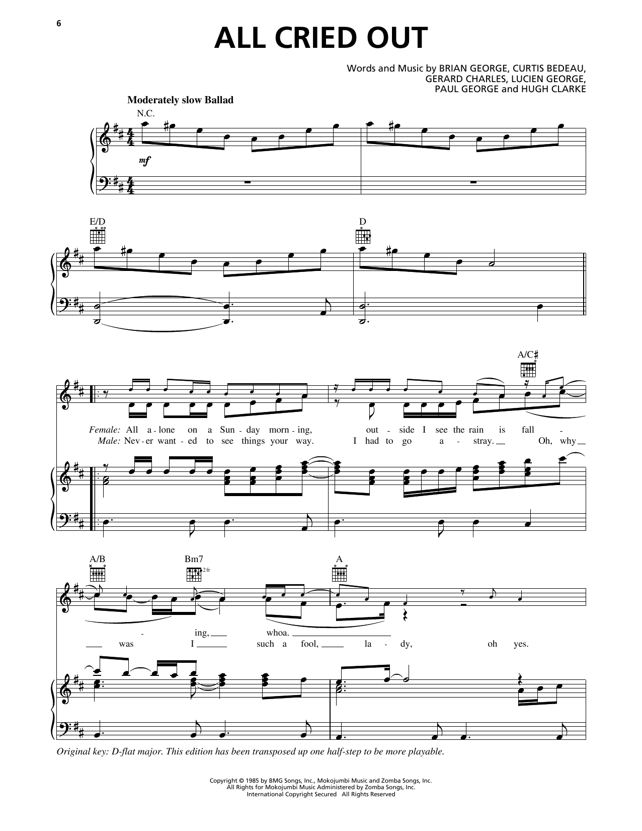 Download or print Allure All Cried Out (feat. 112) sheet music, chords and digital score arranged for Piano, Vocal & Guitar Chords (Right-Hand Melody). This Pop score includes 5 page(s).