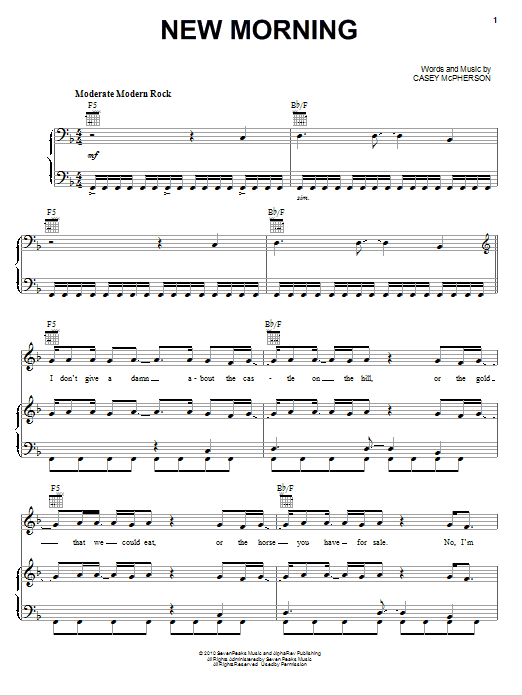 Download or print Alpha Rev New Morning sheet music, chords and digital score arranged for Piano, Vocal & Guitar Chords (Right-Hand Melody). This Film/TV score includes 8 page(s).