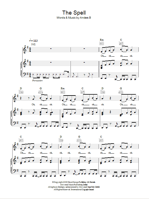 Download or print Alphabeat The Spell sheet music, chords and digital score arranged for Piano, Vocal & Guitar Chords. This Pop score includes 6 page(s).