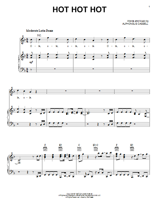 Download or print Buster Poindexter Hot Hot Hot sheet music, chords and digital score arranged for Lead Sheet / Fake Book. This Pop score includes 1 page(s).