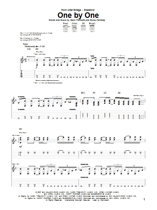 Download or print Alter Bridge One By One sheet music, chords and digital score arranged for Guitar Tab. This Metal score includes 12 page(s).