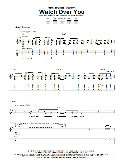 Download or print Alter Bridge Watch Over You sheet music, chords and digital score arranged for Guitar Tab. This Metal score includes 13 page(s).
