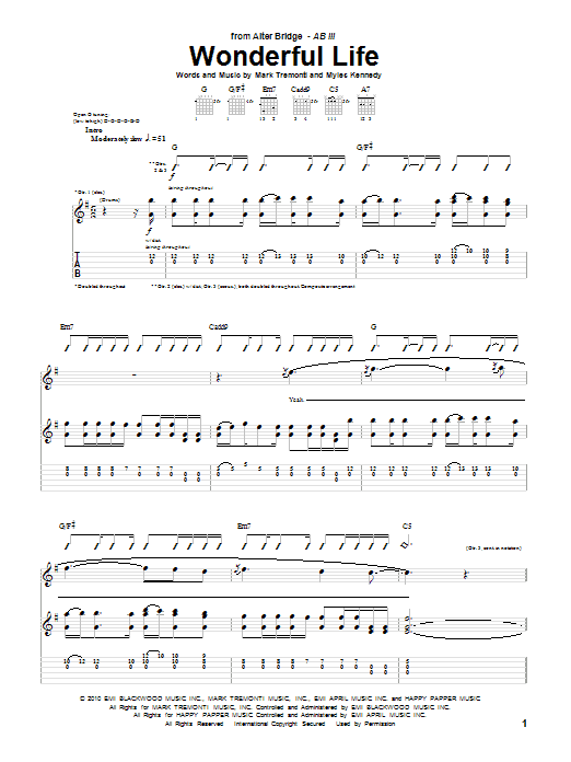 Download or print Alter Bridge Wonderful Life sheet music, chords and digital score arranged for Guitar Tab. This Metal score includes 9 page(s).