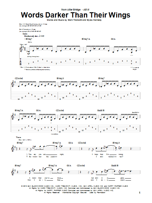 Download or print Alter Bridge Words Darker Than Their Wings sheet music, chords and digital score arranged for Guitar Tab. This Pop score includes 8 page(s).