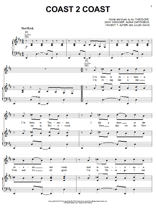 Download or print Alvin And The Chipmunks Coast 2 Coast sheet music, chords and digital score arranged for Piano, Vocal & Guitar Chords (Right-Hand Melody). This Children score includes 5 page(s).
