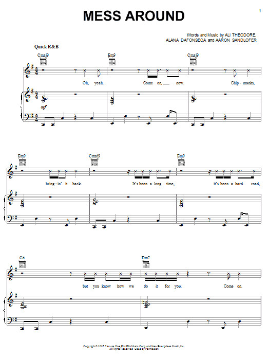 Download or print Alvin And The Chipmunks Mess Around sheet music, chords and digital score arranged for Piano, Vocal & Guitar Chords (Right-Hand Melody). This Children score includes 7 page(s).
