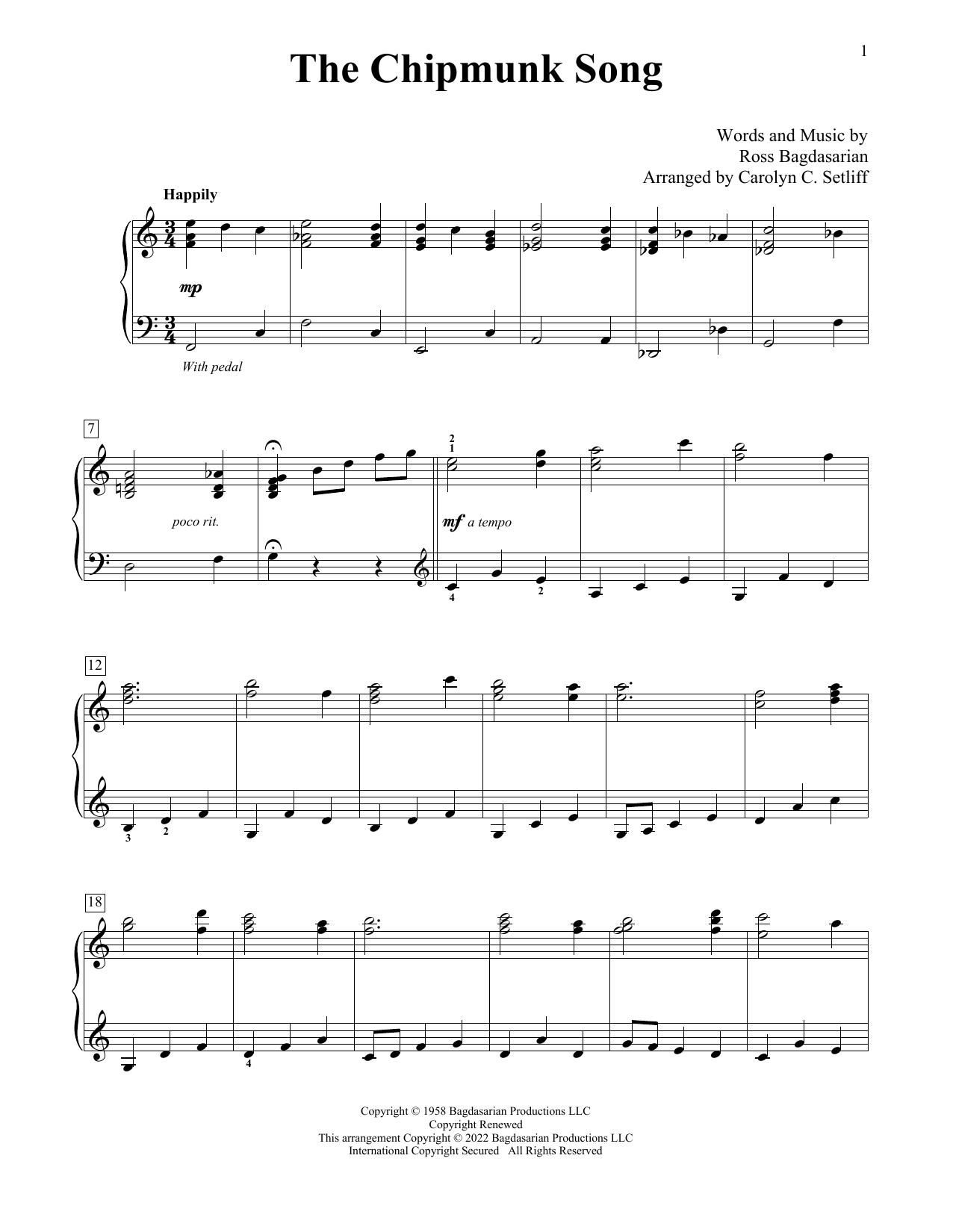 Quick facts The Chipmunk Song (arr. Carolyn C. Setliff) about digital sheet music