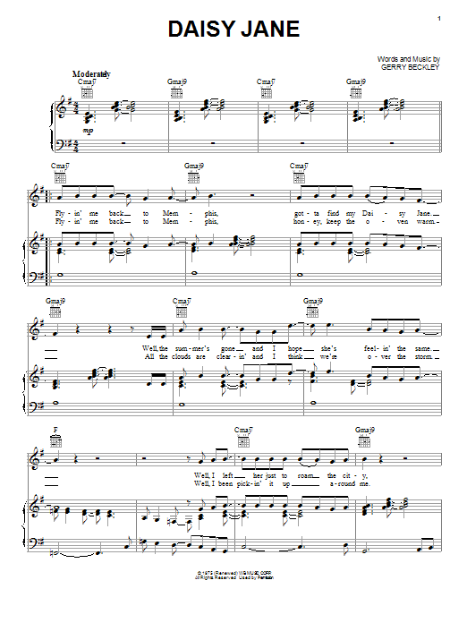 Download or print America Daisy Jane sheet music, chords and digital score arranged for Piano, Vocal & Guitar Chords (Right-Hand Melody). This Folk score includes 3 page(s).