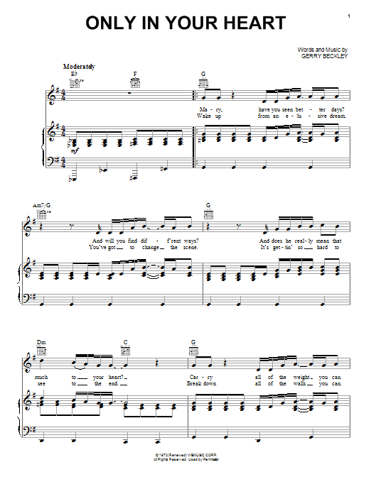 Download or print America Only In Your Heart sheet music, chords and digital score arranged for Piano, Vocal & Guitar Chords (Right-Hand Melody). This Pop score includes 4 page(s).