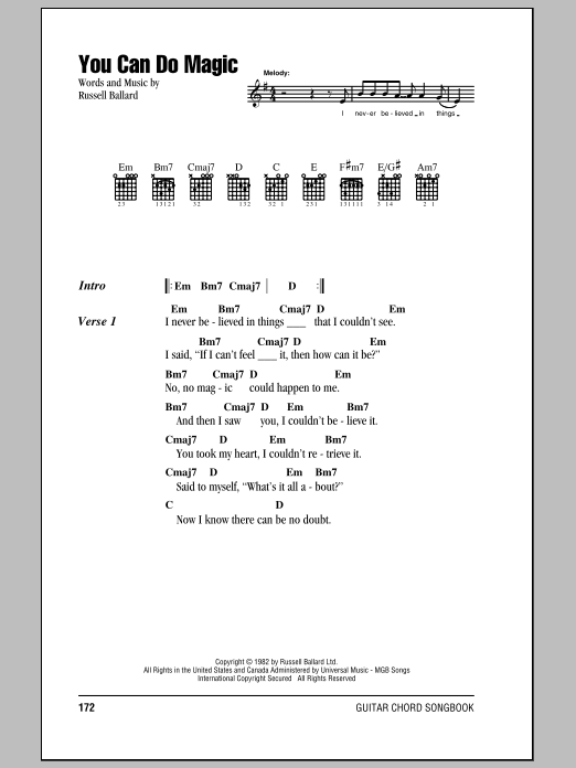 Download or print America You Can Do Magic sheet music, chords and digital score arranged for Piano, Vocal & Guitar Chords (Right-Hand Melody). This Pop score includes 5 page(s).