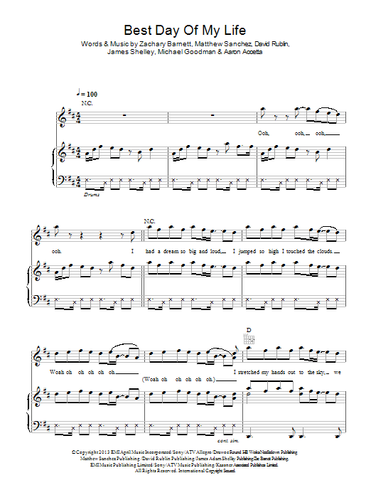 Download or print American Authors Best Day Of My Life sheet music, chords and digital score arranged for Lead Sheet / Fake Book. This Love score includes 2 page(s).