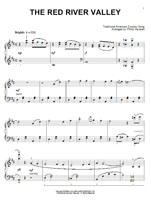 Download or print Traditional American Cowboy Song The Red River Valley (arr. Phillip Keveren) sheet music, chords and digital score arranged for Piano Solo. This Country score includes 3 page(s).