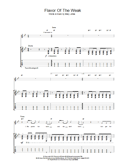 Download or print American Hi-Fi Flavor Of The Weak sheet music, chords and digital score arranged for Bass Guitar Tab. This Pop score includes 9 page(s).