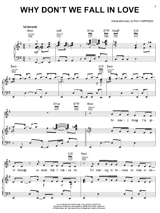 Download or print Amerie Why Don't We Fall In Love sheet music, chords and digital score arranged for Piano, Vocal & Guitar Chords (Right-Hand Melody). This Pop score includes 7 page(s).