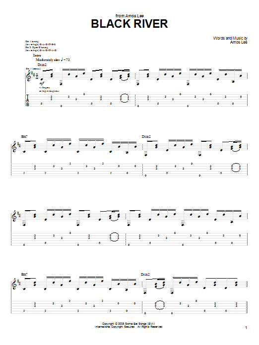 Download or print Amos Lee Black River sheet music, chords and digital score arranged for Guitar Tab. This Folk score includes 8 page(s).