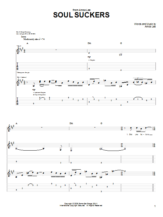 Download or print Amos Lee Soul Suckers sheet music, chords and digital score arranged for Guitar Tab. This Folk score includes 9 page(s).