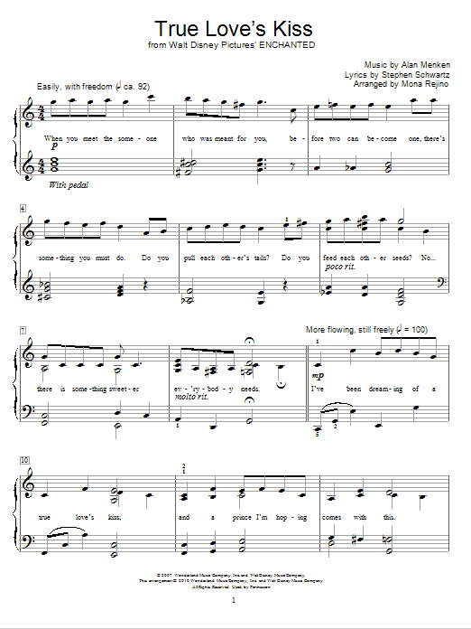 Quick facts True Love's Kiss (from Enchanted) (arr. Mona Rejino) about digital sheet music