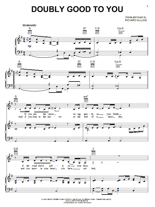 Download or print Amy Grant Doubly Good To You sheet music, chords and digital score arranged for Piano, Vocal & Guitar Chords (Right-Hand Melody). This Christian score includes 4 page(s).